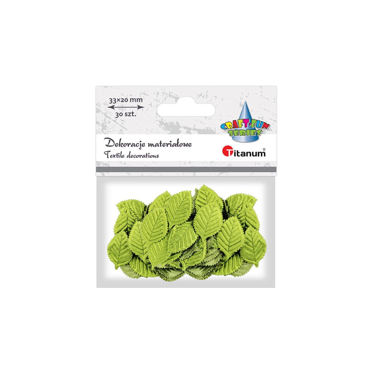Dekoracje materiałowe, kształt: listki, kolor: zielone, wymiary: 33 x 20 mm, 30 szt.