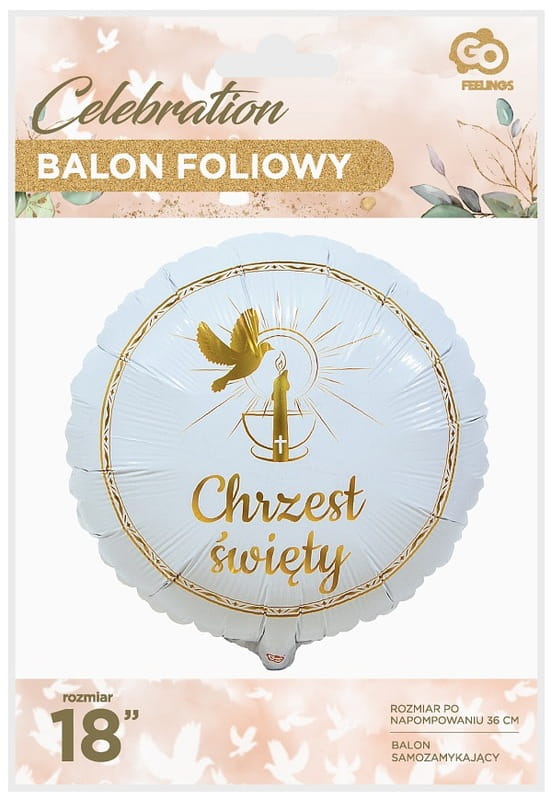 Balon foliowy Chrzest Święty gołąbek i świeca 36 cm, GoDan