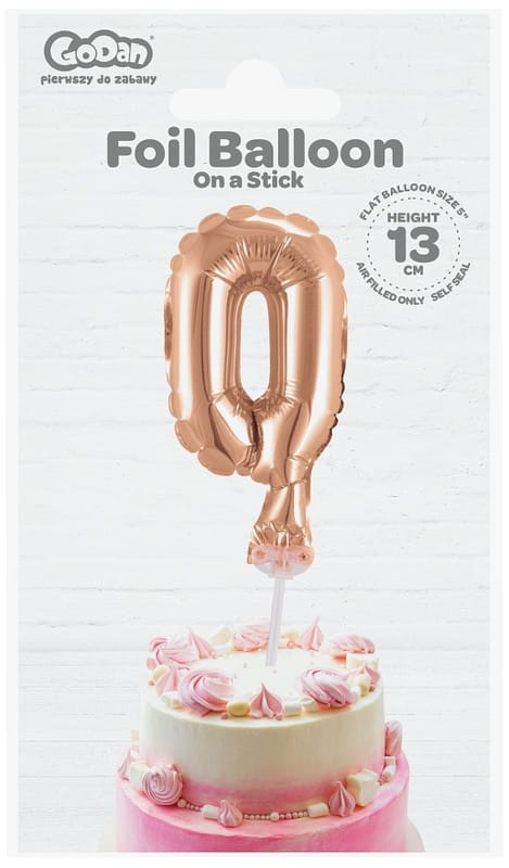 Balon foliowy Cyfra 0 na patyczku różowo-złota 13 cm, GoDan