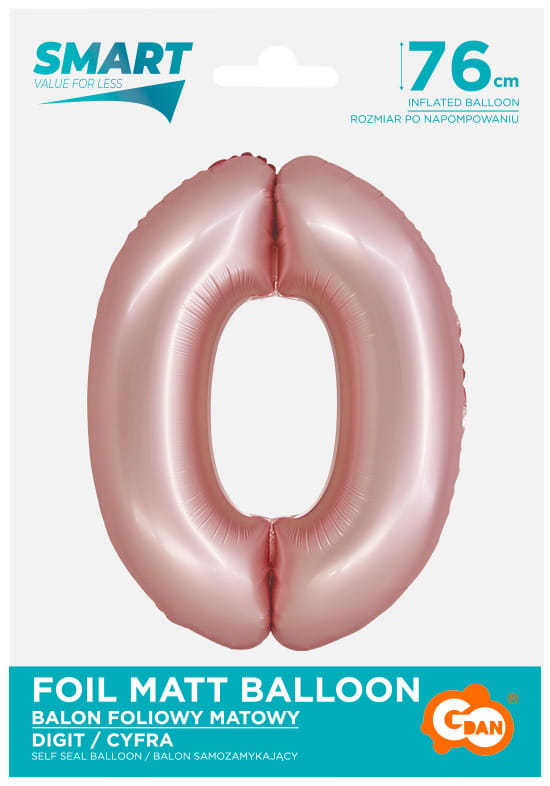 Balon foliowy Cyfra 0 różowa jasna matowa 76 cm, GoDan