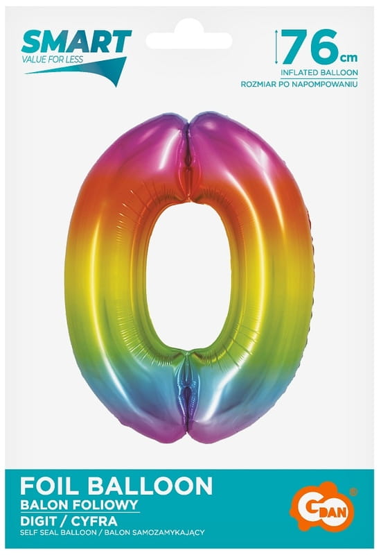 Balon foliowy Cyfra 0 tęczowa 76 cm, GoDan