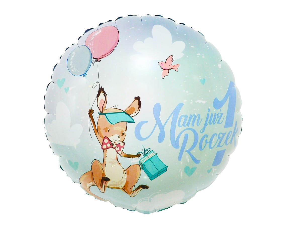 Balon foliowy Cyfra 1 Mam Już Roczek kangurek 36 cm, GoDan