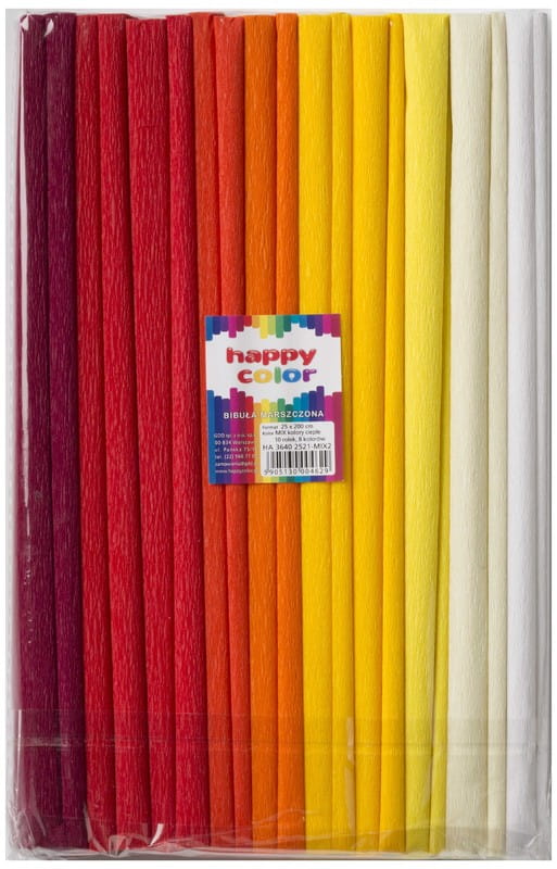 Bibuła marszczona zestaw 8 kolorów Ciepłe 25x200 cm 10 rolek, Happy Color