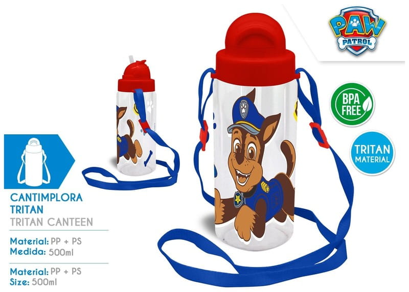 Bidon dla dzieci na wodę Psi Patrol Tritan 500 ml z paskiem, Kids