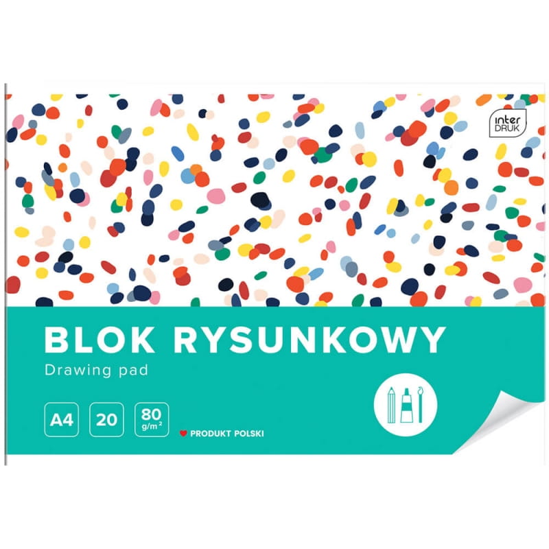 Blok rysunkowy biały A4 20 kartek 80g 10 sztuk OZB, Interdruk