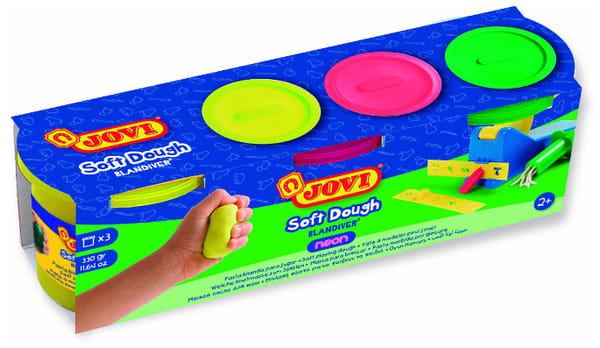 Opakowanie zawiera 3 pojemniki ciastoplasteliny JOVI po 110g, w różnych neonowych kolorach.