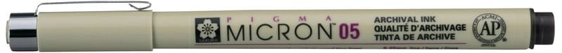 Pigma Micron Calibrated Markers to trwałe, wodoodporne i odporne na światło cienkopisy. Trwały atrament o archiwalnej jakości wykonany z pigmentów na bazie wody (bardziej złożony i stabilny niż atramenty na bazie barwników).