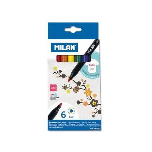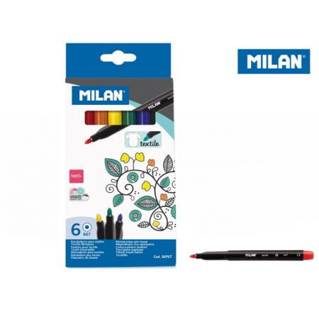 Okrągła końcówka o średnicy 4 mm, która dopasowuje się do powierzchni tkaniny, ułatwiając jej użytkowanie. Wskazane jest, aby najpierw narysować ołówek, a następnie zakryć miejsce markerami. Umieść karton lub plastik z tyłu rysunku, aby druga strona tkaniny nie poplamiła się podczas malowania. Po wyschnięciu wskazane jest utrwalenie rysunku z tyłu żelazkiem w maksymalnej temperaturze, na którą pozwala tkanina. 6 kolorów: żółty, niebieski, pomarańczowy, czarny, czerwony, zielony. Z wentylowaną nasadką bezpieczeństwa.