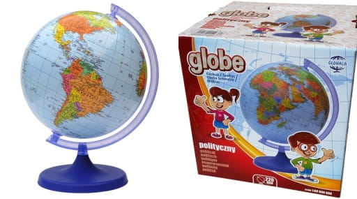 - Globus 220 mm mapa polityczna, cięciwa plastikowa, stopka plastikowa.
