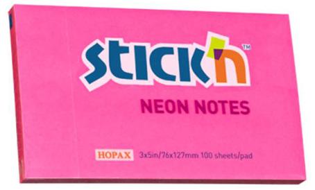 Karteczki samoprzylepne Notes neon różowy ciemny 127x76 mm 100 kart., Stick'n