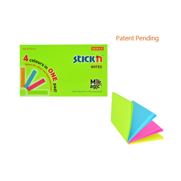 Notesy samoprzylepne Magic Pads to rewolucyjne rozwiązanie – krawędź bloczka sklejona jest w sposób umożliwiający wyjmowanie karteczek w dowolnym kolorze bez konieczności rozrywania go. Bloczek o wymiarach 76×127 mm w 4 kolorach neonowych.