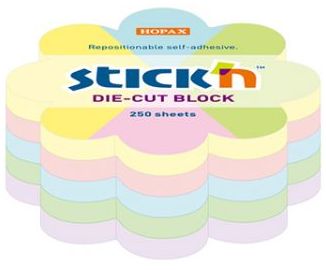 Notes samoprzylepny kostka w kształcie kwiatka o wymiarach 67×67 mm. Zawiera miks 5 kolorów pastelowych, po 50 karteczek w kolorze żółtym, jasnoróżowym, niebieskim, zielonym i fioletowym. W sumie bloczek liczy 250 karteczek. Klej nałożony na jednym z brzegów karteczki. Karteczki samoprzylepne idealne są do robienia krótkich notatek, zostawiania ważnych wiadomości. Każdy notes kostka zabezpieczony folią przed pobrudzeniami i uszkodzeniami.