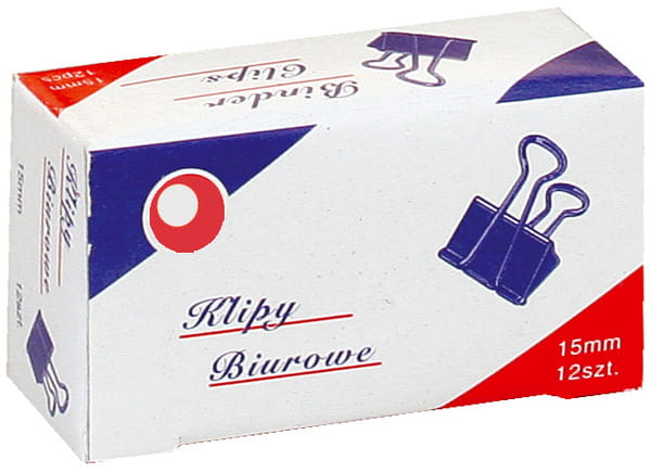 Klipy biurowe do spinania papieru - metalowe - rozmiar: 15 mm - kolor: czarny - opakowanie: 12 sztuk