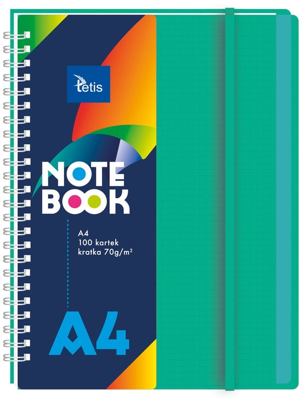 Kołozeszyt A4 w plastikowej okładce 100 kartek kratka zielony na gumkę, Tetis