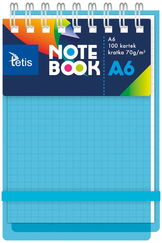 Kołozeszyt A6 w plastikowej okładce 100 kartek kratka niebieski na gumkę, Tetis