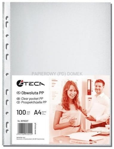 - na dokumenty, wykonane z folii PP, przezroczyste, dziurkowanie europejskie, A4, 100 szt. w folii,