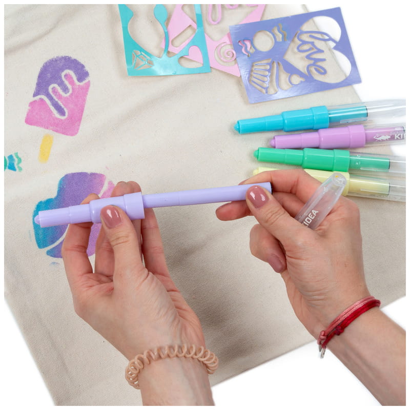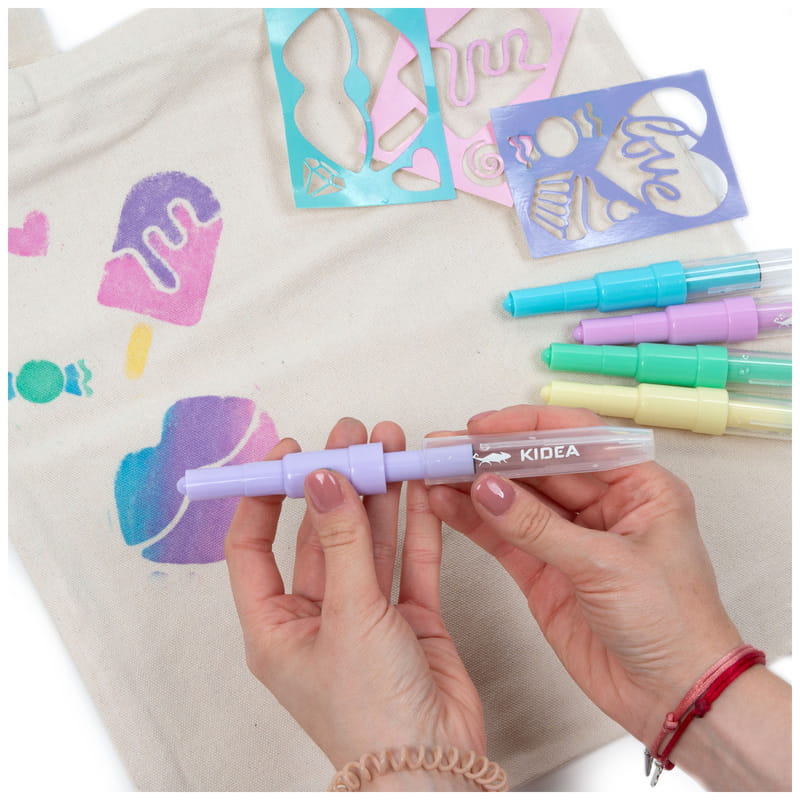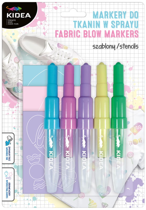 Markery do tkanin w sprayu z szablonami Sweet Love 5szt. Kidea, Derform