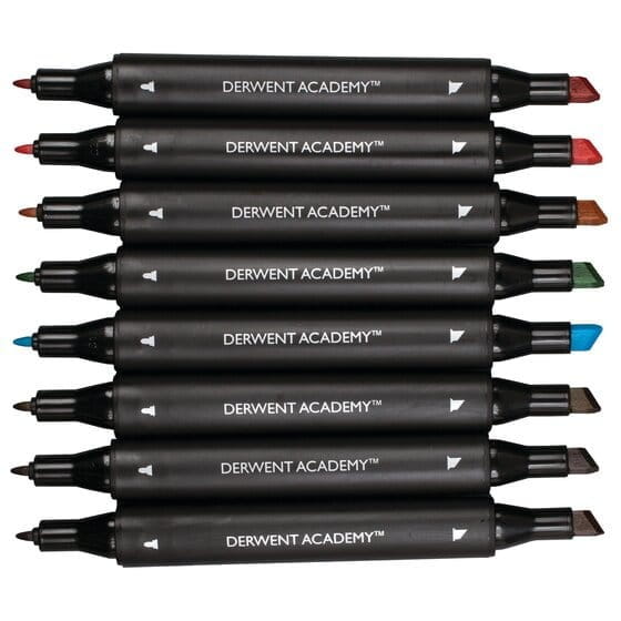 Markery dwustronne Derwent 8 kolorów Academy