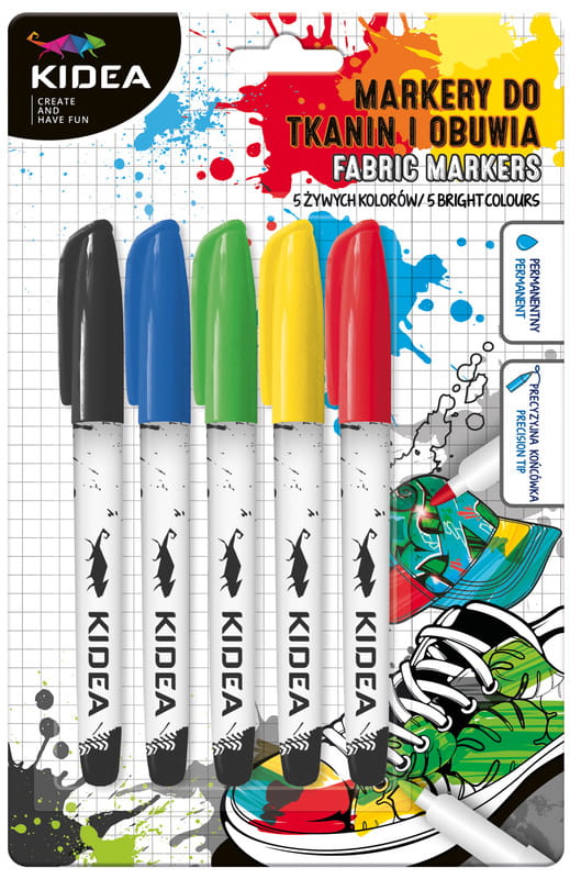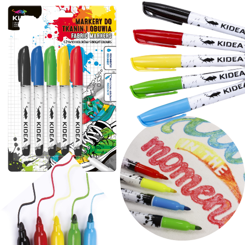 Markery pisaki do tkanin i butów zestaw 5 kolorów Kidea