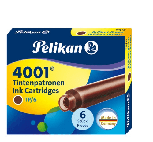 - Klasyczne naboje atramentowe TP/6 w kolorze brązowym przeznaczone do wszystkich piór wiecznych marki Pelikan oraz wielu innych marek.