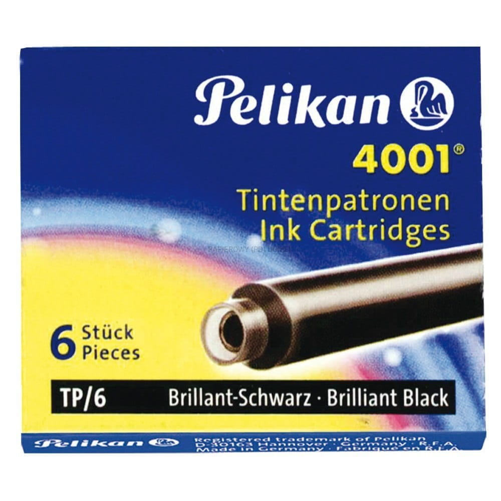 - Klasyczne naboje atramentowe TP/6 w kolorze czarnym przeznaczone do wszystkich piór wiecznych marki Pelikan oraz wielu innych marek.