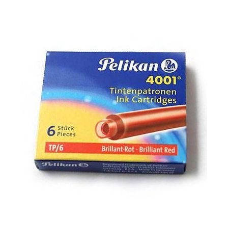 - Klasyczne naboje atramentowe TP/6 w kolorze czerwonym przeznaczone do wszystkich piór wiecznych marki Pelikan oraz wielu innych marek.
