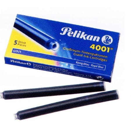 - Naboje atramentowe GTP/5 bez nadruku do wszystkich piór wiecznych marki Pelikan, opakowanie zawiera pięć nabojów.