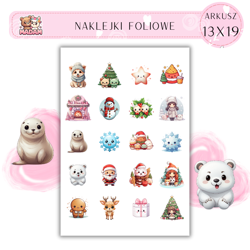 Naklejki Foliowe 13x19, Madam święta: Bałwanki i prezenty – zima pełna radości i zabawy!