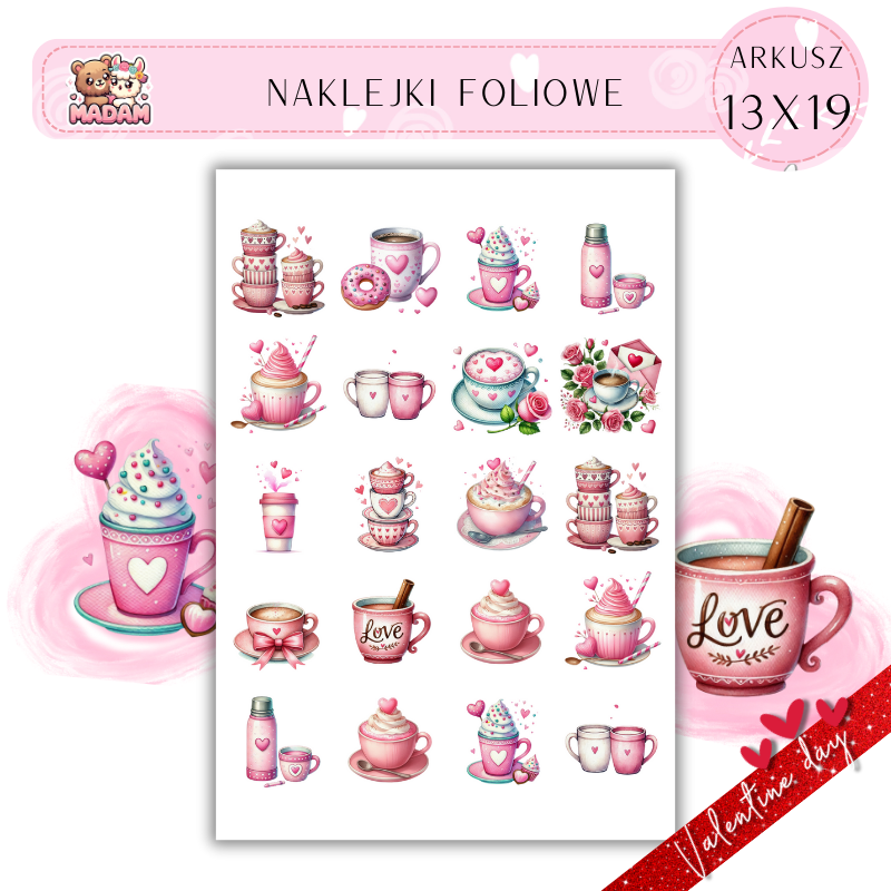Naklejki Foliowe 13x19 Akwarelowa Walentynkowa Kawa – Aromat miłości w malarskim wydaniu! Madam