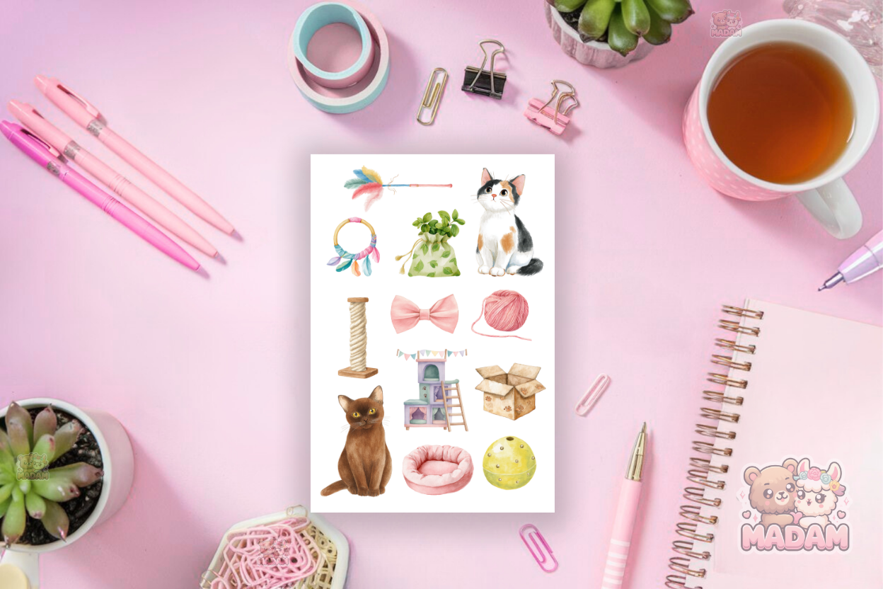 Naklejki Foliowe 13x19 Akwarelowe Koty - Artystyczny styl MaDam Creative
