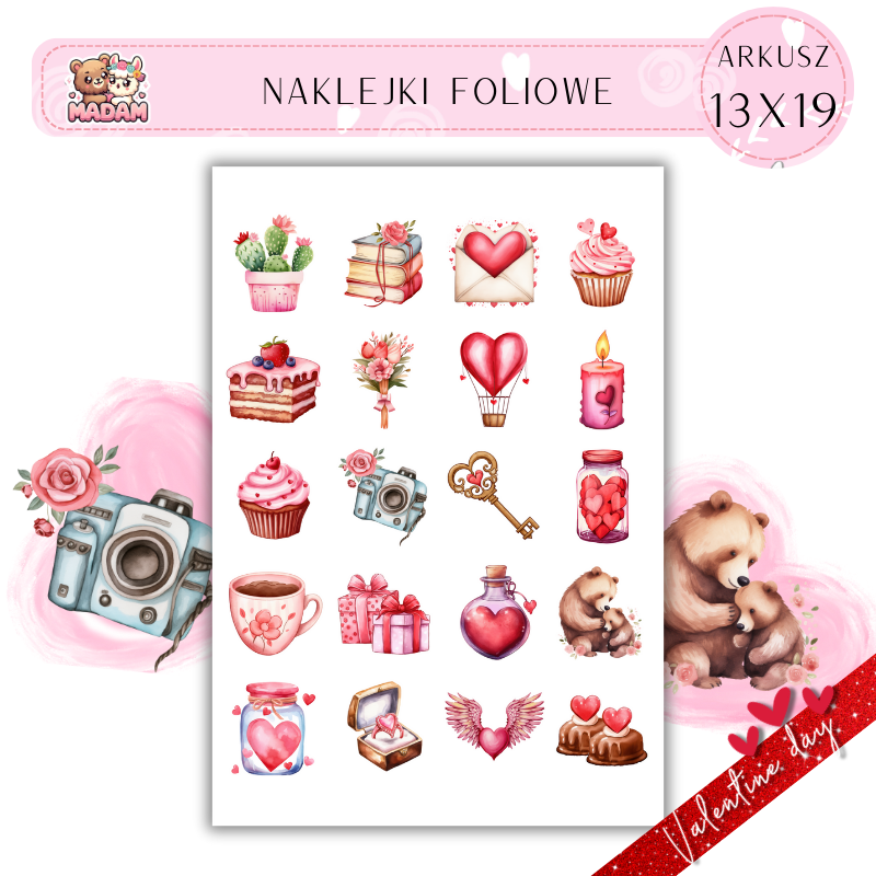 Naklejki Foliowe 13x19 Akwarelowe Walentynki – Miłość namalowana sercem! Madam