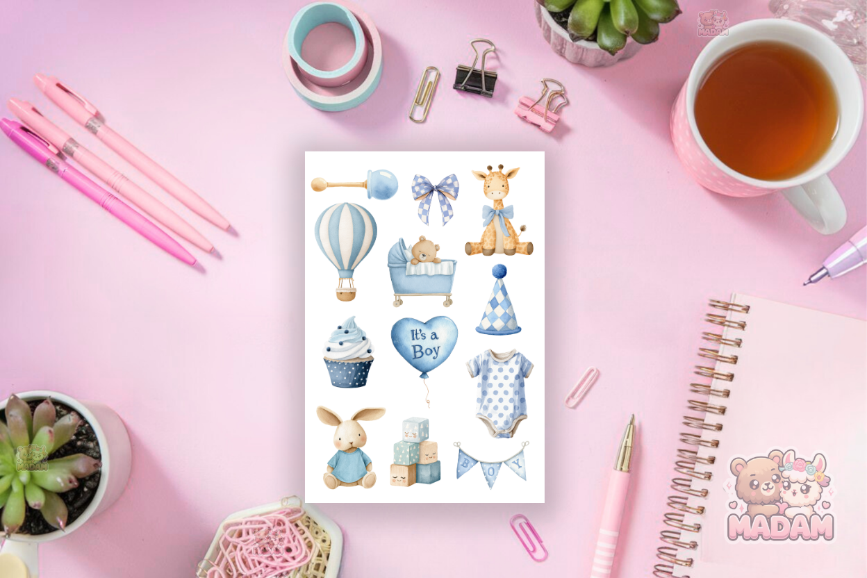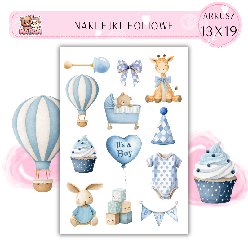 Naklejki Foliowe 13x19 Baby Boy - Pierwsze Urodziny i Baby Shower MaDam Creative