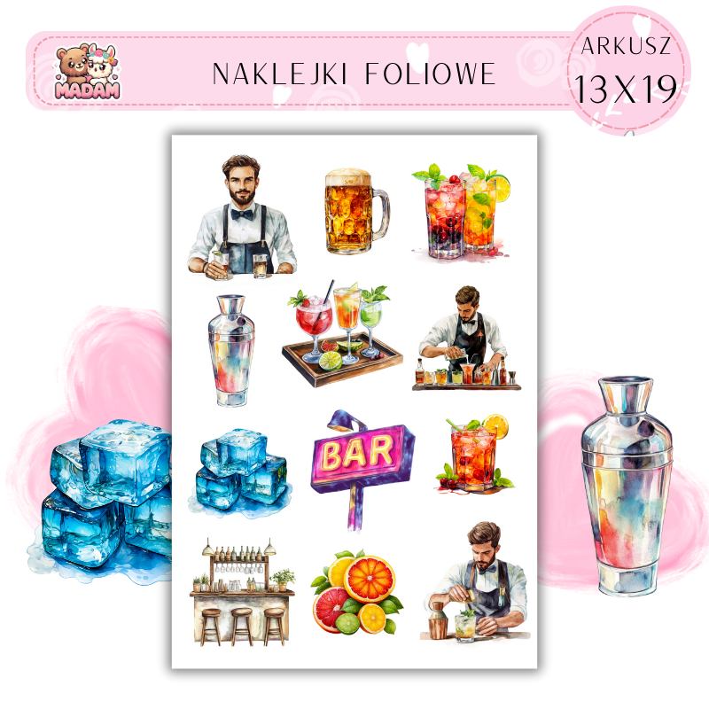 Naklejki Foliowe 13x19 Barman - Drinki i koktajle MaDam Creative
