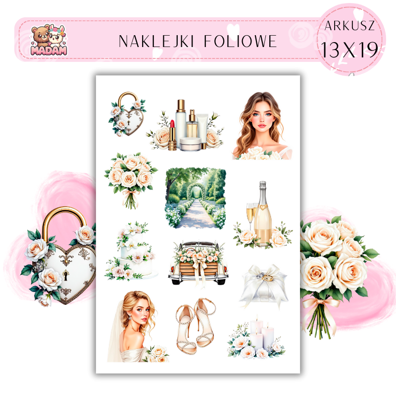 Naklejki Foliowe 13x19 Biały Ślub - Klasyka i elegancja MaDam Creative