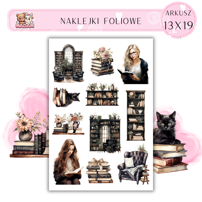 Naklejki Foliowe 13x19 Bibliotekarka 2 - Książki i wiedza MaDam Creative
