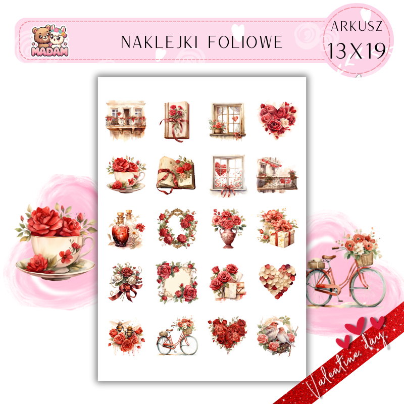 Naklejki Foliowe 13x19 Czerwone Walentynkowe Kwiaty – Miłość rozkwita w odcieniach pasji! Madam