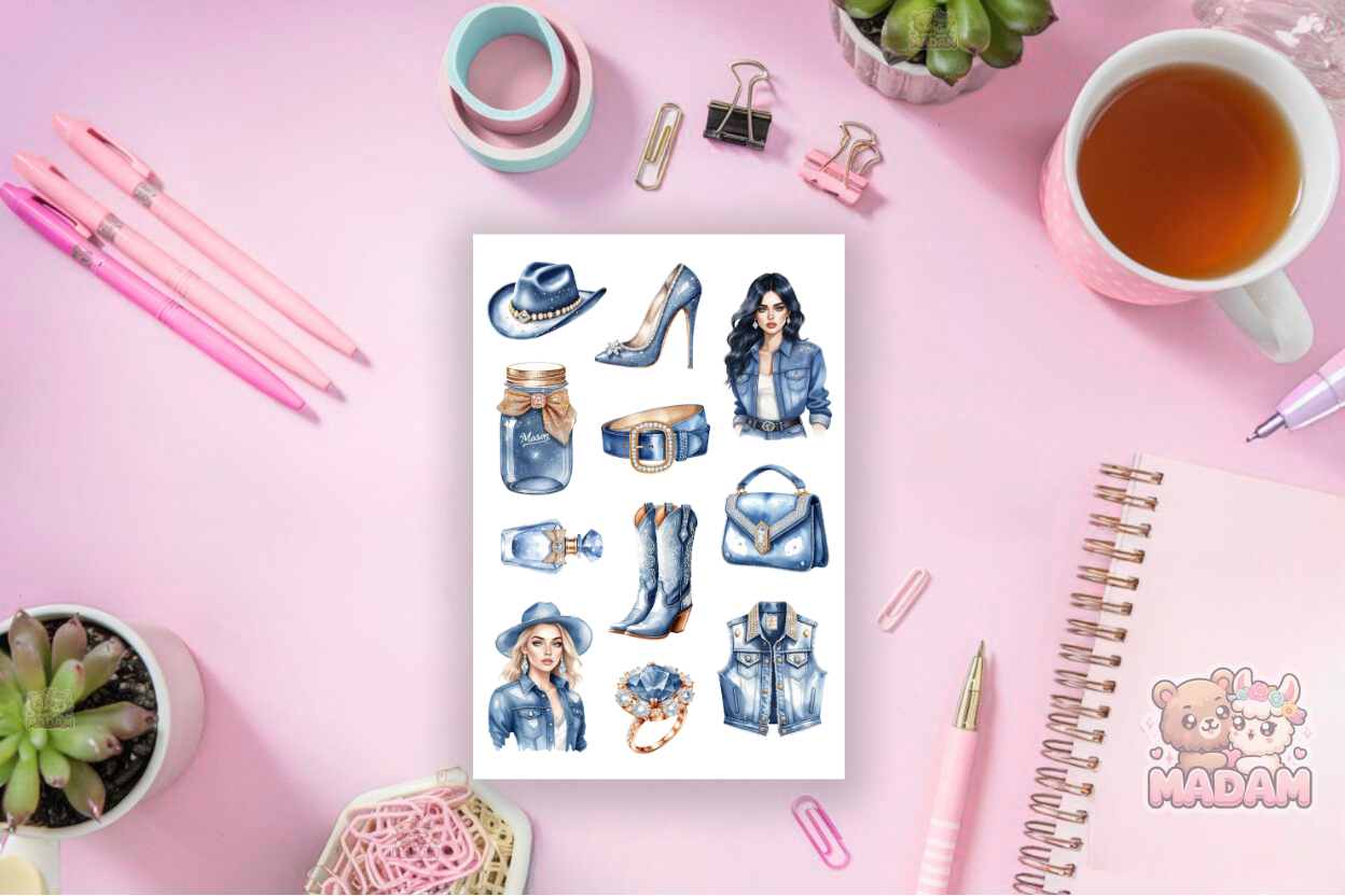 Naklejki Foliowe 13x19 Jeans i Diamenty - Western glam i blask MaDam Creative