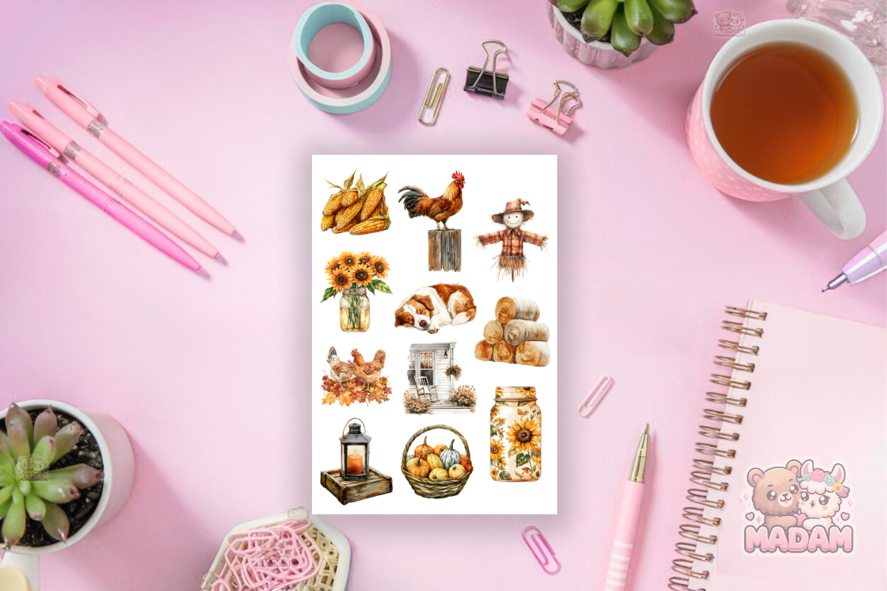 Naklejki Foliowe 13x19 Jesień w Zagrodzie - Dynie i rustykalny klimat MaDam Creative
