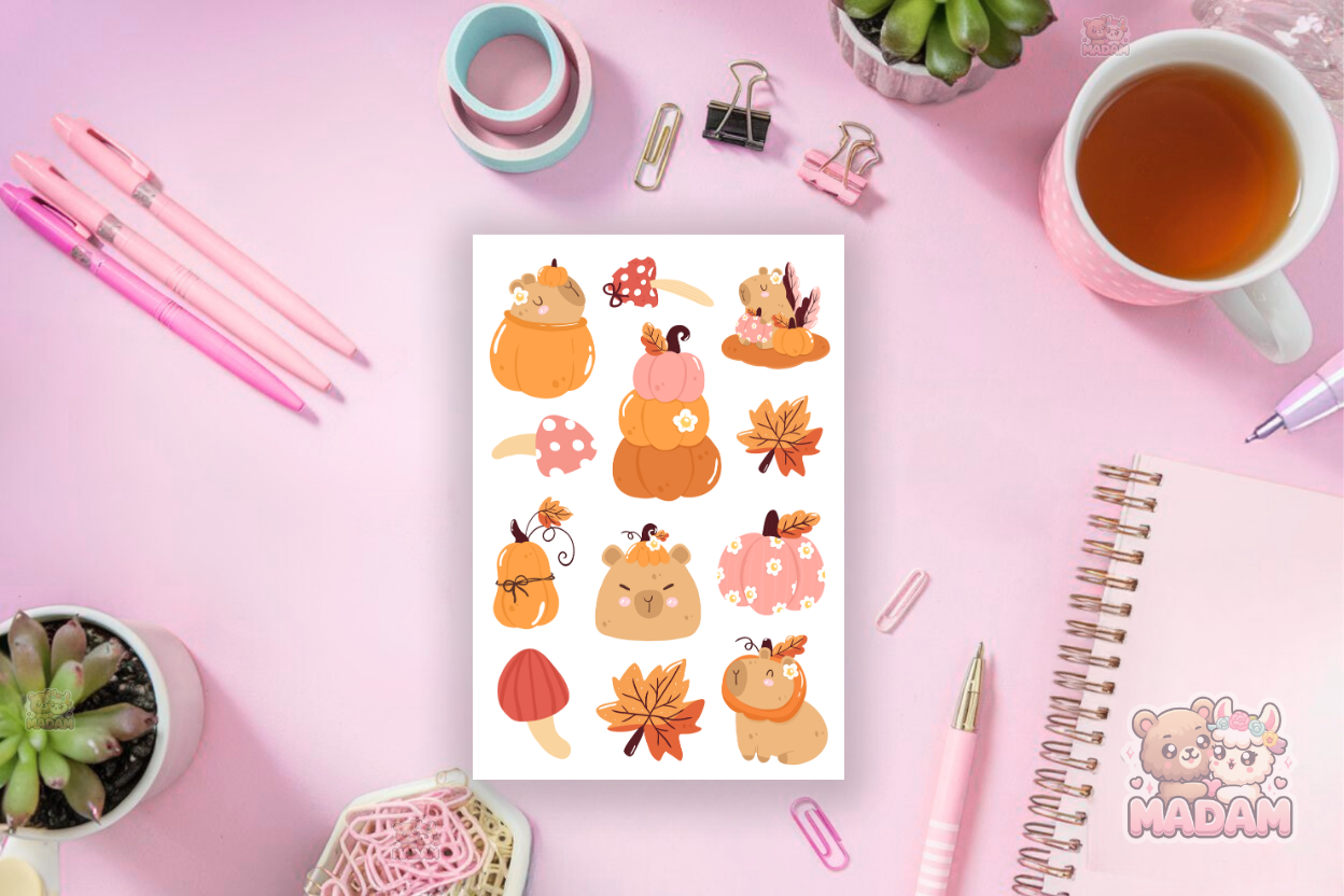 Naklejki Foliowe 13x19 Jesienna Kapibara - Liście i ciepły klimat MaDam Creative