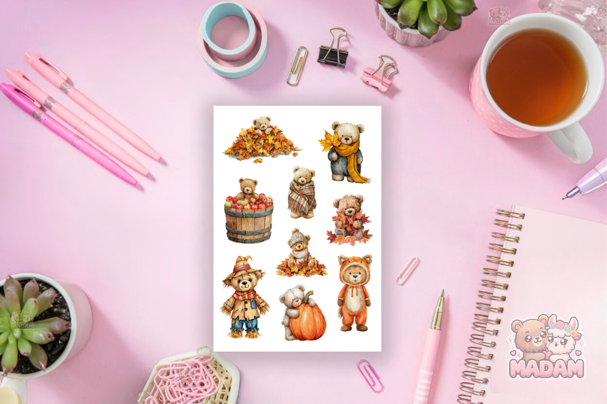 Naklejki Foliowe 13x19 Jesienny Miś - Liście i przytulny klimat MaDam Creative