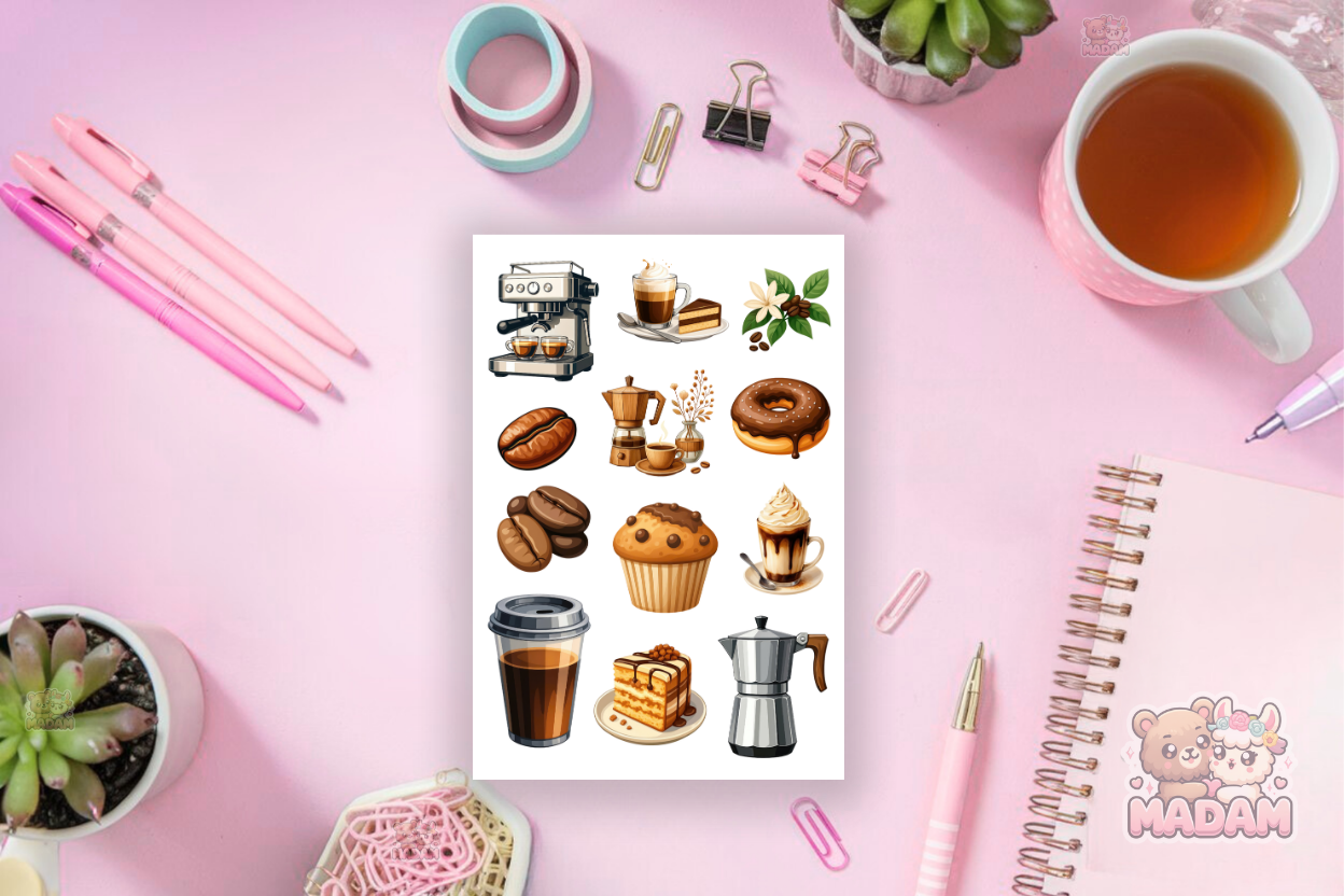 Naklejki Foliowe 13x19 Kawaii Coffee Lovers - Kawa w uroczym stylu MaDam Creative
