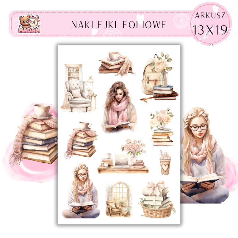Naklejki Foliowe 13x19 Książki i Róże – Romantyczne chwile w świecie liter i kwiatów! Madam 1