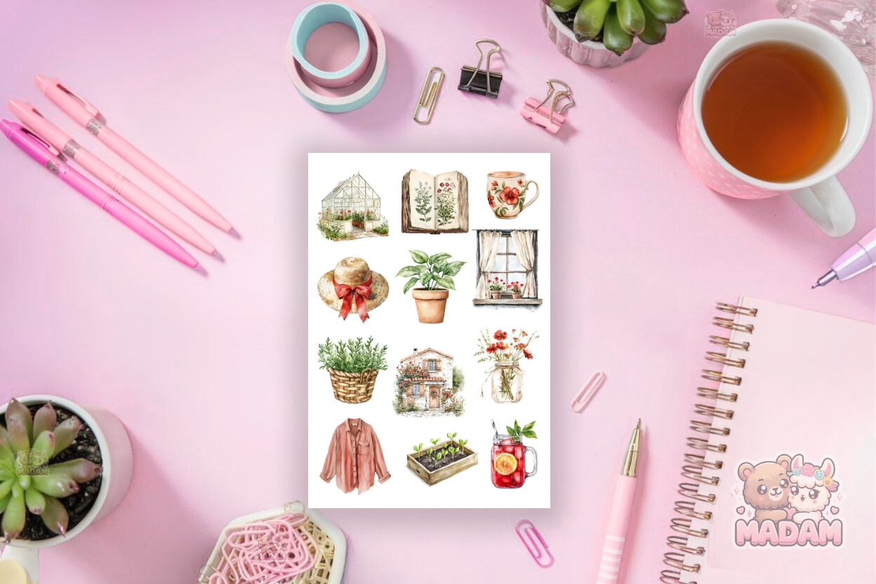 Naklejki Foliowe 13x19 Wiosenny Ogród Domku - Kwiaty i pastelowe barwy MaDam Creative