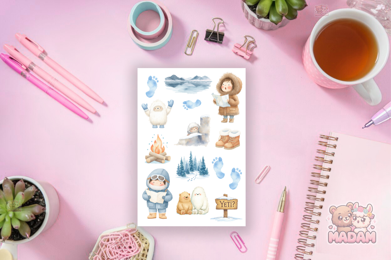 Naklejki Foliowe 13x19 Zimowa Ekspedycja Yeti - Śnieżna przygoda MaDam Creative