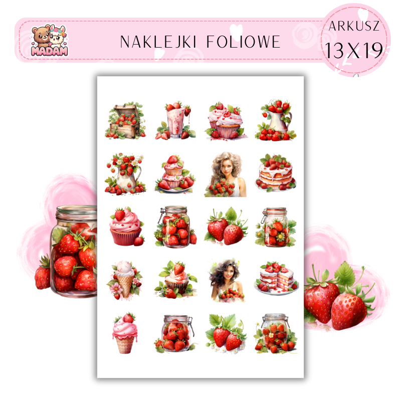 Naklejki Foliowe Truskawki Jedzenie 13x19, MaDam