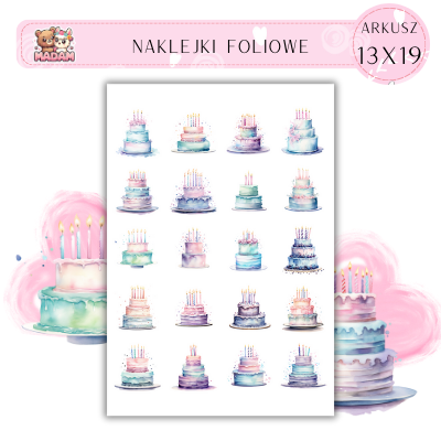 Naklejki Foliowe Urodziny Torty 13x19, Madam