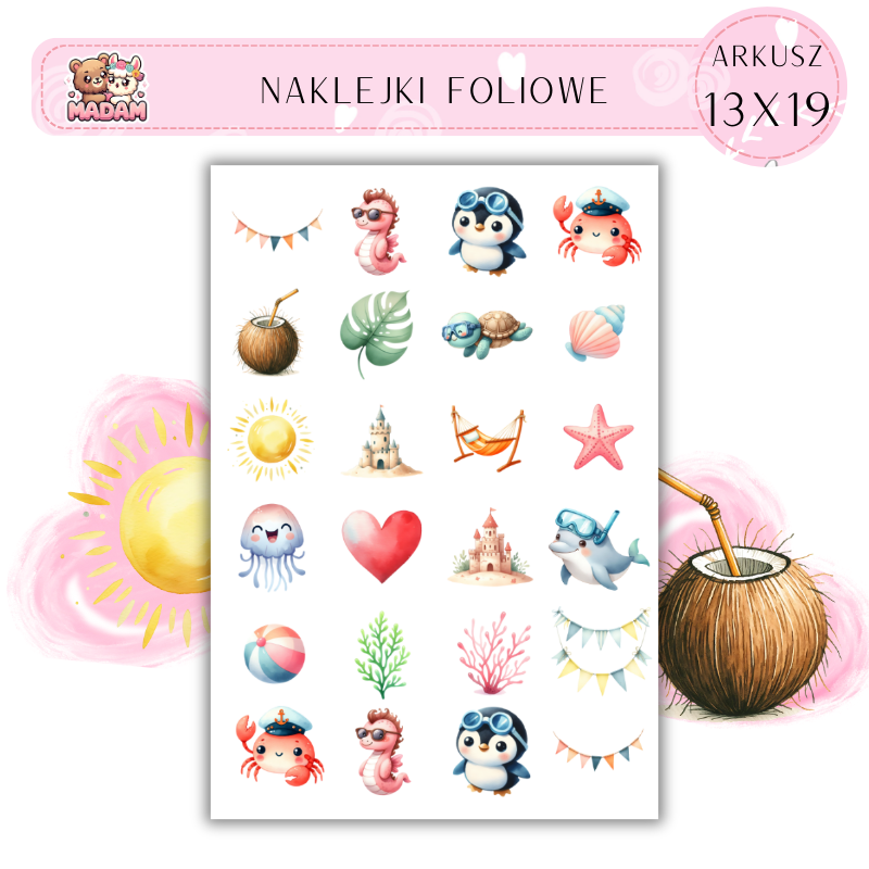 Naklejki Foliowe Wakacje nad wodą 13x19, Madam