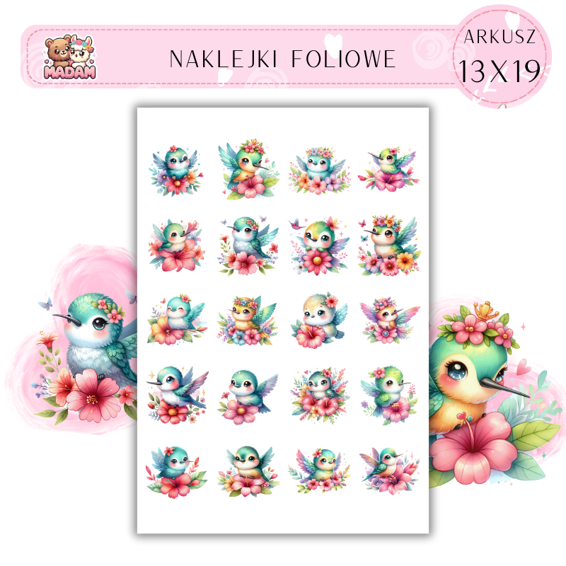 Naklejki Foliowe Wiosenny Koliber – Mały akrobata z kwiatową misją! Madam 13x19