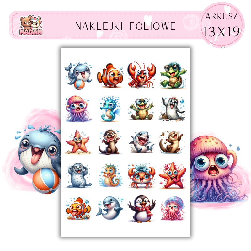Naklejki Foliowe Zabawne Morskie Zwierzaki – Uśmiechy prosto z głębin. Madam 13x19