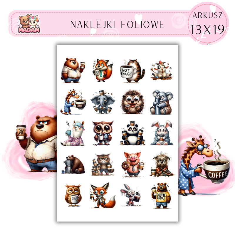 Naklejki Foliowe Zakręcone Zwierzaki na Kawie – Szybsi niż espresso, bardziej pobudzeni niż poranny alarm! Madam 13x19